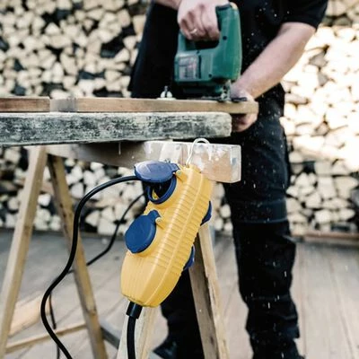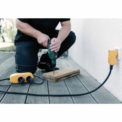 Le câble robuste avec fiche RCD et prise de sécurité protégée contre les jets d’eau à 4 voies est facile à utiliser. Connectez-le simplement à la prise et branchez les appareils requis. Le câble offre une protection maximale lors de l’utilisation d’équipements électriques. En cas de contact avec des fils ou des pièces conducteurs de courant, l’alimentation en courant est automatiquement interrompue pour protéger contre les blessures corporelles dangereuses et les chocs électriques. Avec un indice de protection IP54, le câble est étanche à la poussière et parfait pour une utilisation en plein air.