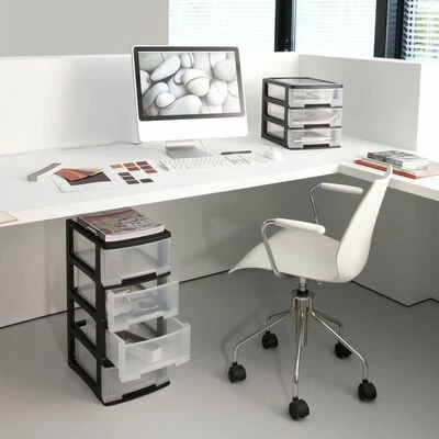 - Capacité pratique : le cube de bureau est doté d’un système à 3 tiroirs et d’une capacité de 5 L pour chaque tiroir.