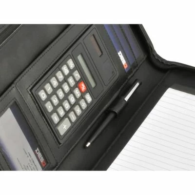 Profitez des caractéristiques pratiques et attrayantes de ce dossier de conférence livré avec un bloc-notes et calculatrice et équipé d’un porte-plume et de plusieurs inserts à des fins d’organisation et de protection de vos documents.