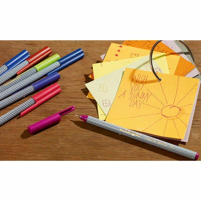 Le feutre a une pointe robuste à cadre métallique qui, malgré sa finesse d’environ 0,3 mm, est particulièrement durable. L’encre du stylo est à base d’eau.