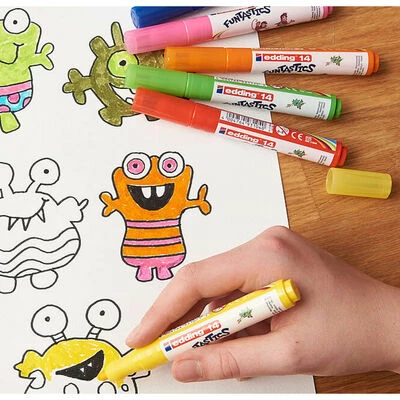 Dessinez ou coloriez des princesses, des chevaliers, des animaux mystiques ou des affiches! Ces 18 feutres à fibre large multicolores Funtastics de la marque edding rendent tout papier et carton de couleur claire coloré et amusant. Mieux encore, elles se présentent dans un design ergonomique idéal pour les enfants.