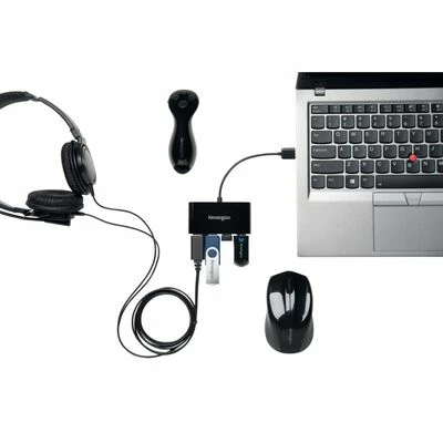 Le hub innovant de la marque Kensington vous aide à étendre les capacités de productivité de votre ordinateur en connectant vos périphériques aux quatre ports USB 2.0 disponibles.