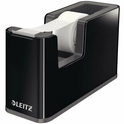 Ce distributeur de ruban adhésif double de la marque Leitz est suffisamment stable pour reposer parfaitement sur la table pour une utilisation pratique d’une seule main.