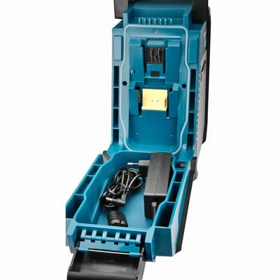Elle dispose d’un boîtier robuste et d’une antenne FM inventive intégrée dans la poignée, bien protégée contre la poussière et l’humidité. De plus, elle est équipée d’un égaliseur intégré avec 6 positions préréglées et 1 position auto-réglable. La radio est également équipée de la DAB + et du Bluetooth pour la connexion sans fil des smartphones afin d’écouter de la musique. La radio numérique DAB / DAB + offre une meilleure qualité sonore sans interférences. Cette radio fonctionne sur les batteries Makita CXT et LXT Li-ion et 230 V avec adaptateur inclus. Elle offre jusqu’à 14 heures de plaisir d’écoute sur 1 charge de batterie complète avec la batterie de 12 V (4.0 Ah) ou jusqu’à 16 heures avec la batterie de 18 V (5.0 Ah). Elle est livrée avec une connexion AUX pour un lecteur MP3 ou iPod (câble de connexion non inclus). Elle dispose également d’une connexion USB pour recharger les smartphones.