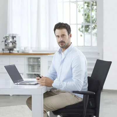 Grâce à sa forme spéciale, le coussin chauffant OL 350 avec support lombaire de la marque Medisana contribue à améliorer la posture assise en stimulant activement les muscles du dos et en évitant une mauvaise posture de la colonne vertébrale.