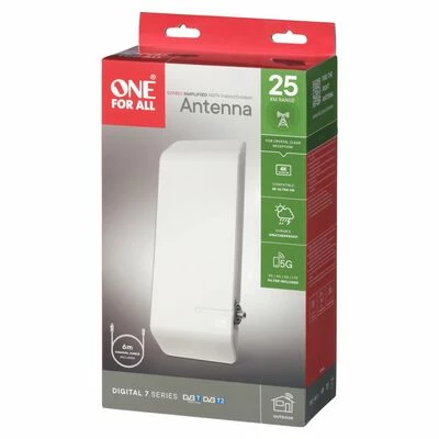 Pour des performances optimales, utilisez cette antenne One For All dans un rayon de 25 km de votre émetteur le plus proche.