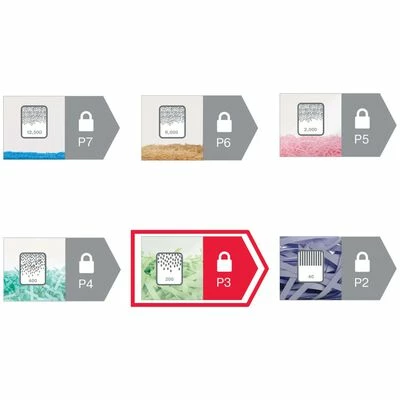 Grâce à sa fonction puissante, cette machine peut déchiqueter jusqu’à 8 feuilles A4 à la fois, avec un temps de fonctionnement continu de 3 minutes, ce qui en fait une machine idéale pour les tâches occasionnelles. La déchiqueteuse de bureau de niveau de sécurité P3 coupe les papiers sans avoir à retirer les agrafes et les trombones.