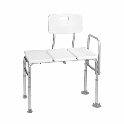 Le cadre du banc de transfert est en aluminium durable et résistant à la rouille et son siège est en polyéthylène haute densité sans entretien et équipé de trous de vidange pour permettre un séchage rapide. Il a de grands pieds antidérapants avec des ventouses qui assurent que le banc de transfert reste en place en toute sécurité, même sur les planchers mouillés.