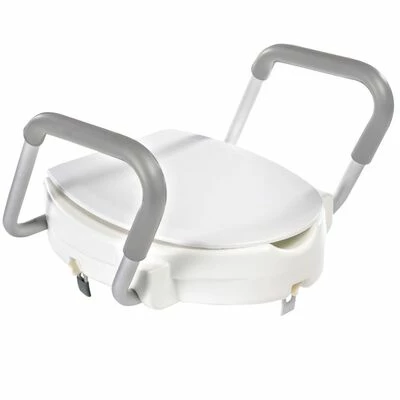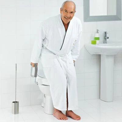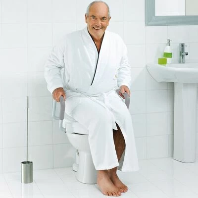 Le siège de toilette est fait de plastique facile à nettoyer et agréable pour la peau, sans bords tranchants. Il présente de grandes ouvertures à l’avant et à l’arrière pour une meilleure hygiène et augmente la hauteur d’assise de 10 cm. Ses barres d’appui de sécurité robustes rendent l’utilisation de la toilette encore plus facile et sécuritaire et éliminent le besoin de barres d’appui murales.