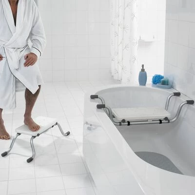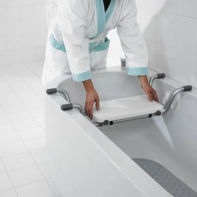 Il est non seulement un siège de baignoire pratique et suspendu qui vous aidera à utiliser la baignoire, mais qui sert aussi de tabouret pratique. Le siège lui-même est fait de plastique à faible entretien avec des trous de drain et sa structure est en aluminium résistant à la rouille avec pare – chocs en caoutchouc de protection. Le siège de baignoire a une capacité de charge maximale de 150 kg et est réglable en largeur entre 73 et 83 cm, ce qui le rend adapté à toutes les baignoires standard.