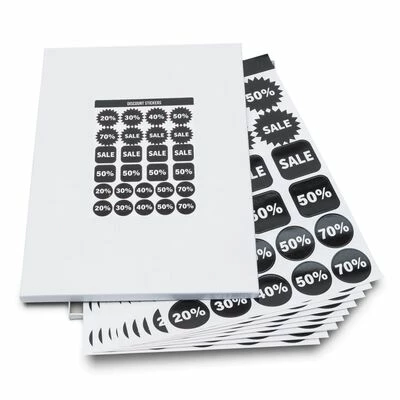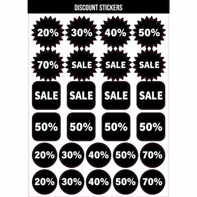 L’ensemble d’autocollants de réduction se compose de 13 autocollants de réduction différents adaptés aux besoins de remises et de vente. Le texte blanc est clairement lisible sur les autocollants noirs, ils mettent donc l’accent sur le message marketing nécessaire. Ces étiquettes autocollantes en papier sont idéales pour indiquer que les produits de votre magasin sont en solde.