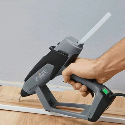 Avec le pistolet à colle GluePRO 400 LCD de la marque Steinel, vous pouvez coller de manière professionnelle et à une température exacte et correcte. Presque tous les types d’adhésifs thermofusibles peuvent être utilisés.