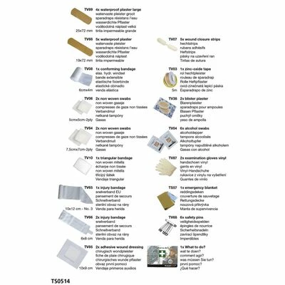 Remarque: Si vous voyagez dans un pays en Europe, une trousse de premiers soins bleu/rouge est suffisante. Un kit stérile orange/jaune est fortement recommandé si vous visitez des pays à haut risque comme ceux d’Afrique, d’Amérique du Sud et d’Asie, en bref les pays (sub) tropicaux.