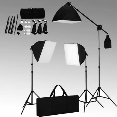 Ces 3 lampes photo, avec des boîtes à lumière, sont des sources lumineuses idéales pour une photo ou une vidéo créative. En utilisant les boîtes à lumière, les ombres dures sont évitées. La hauteur des lampes est réglable, entre 78 et 230 cm. L’ensemble tient dans le sac de transport inclus. Il s’agit d’un éclairage continu et non d’un ensemble de flashs.