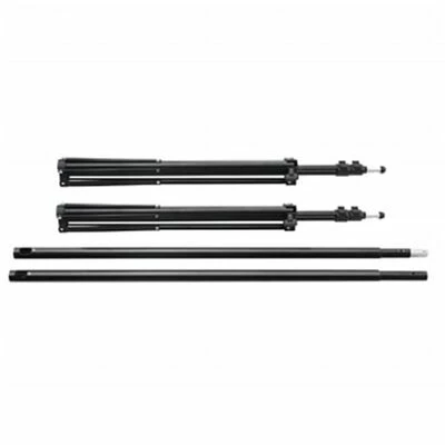 Cet ensemble comprend un système de support d’arrière-plan complet et une toile de fond noire extra large (600 x 300 cm). Un kit d’éclairage est également inclus. Ce kit comprend 2 lampes à lumière du jour avec parapluies. La puissance de chaque lampe est de 24 watts (la puissance effective est équivalente à 100 watts).
