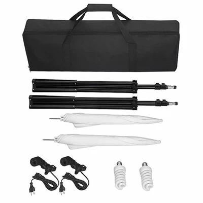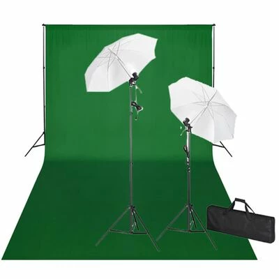 Cet ensemble comprend un système de support d’arrière-plan complet et une toile de fond verte extra large (600 x 300 cm). Un kit d’éclairage est également inclus. Ce kit comprend 2 lampes à lumière du jour avec parapluies. La puissance de chaque lampe est de 24 watts (la puissance effective est équivalente à 100 watts).