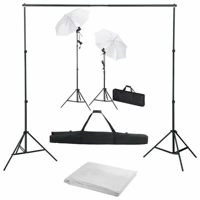 Ce kit de studio photo, composé d’un ensemble de lampes de photographie et d’une toile de fond, est idéal pour la photographie en studio ou sur place.