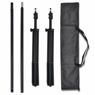 La livraison comprend 2 supports, 2 segments de barre transversale, 3 toiles de fond et 1 sac de transport.
