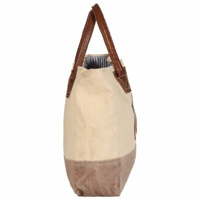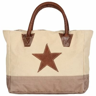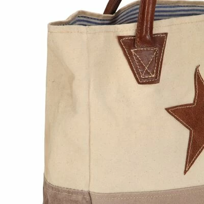 Ce sac à provisions à la mode, avec une décoration d’une grande étoile, est adapté à presque toutes les occasions. Fabriqué en toile durable, ce sac à provisions est durable et facile à entretenir. Les poignées et la décoration d’étoile sont faites en cuir véritable de chèvre qui est doux et flexible, et donc un excellent matériau pour les sacs.