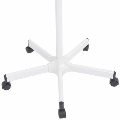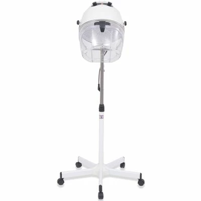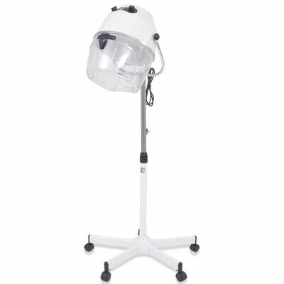 La casque du sèche-cheveux peut pivoter et est équipée d’une visière qui peut être soulevée pour un accès facile. De plus, le support de sol est réglable en hauteur et est livré avec des roues pour un transport facile.
