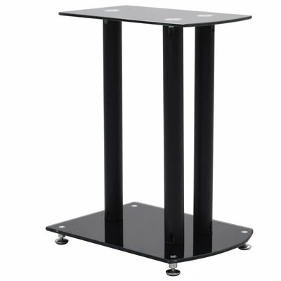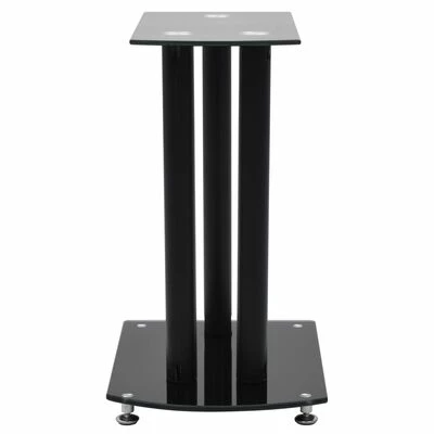Les plaques supérieure et inférieure du support sont en verre de sécurité. Il y a trois piliers en aluminium sur chaque support, qui fourniront un support ferme aux haut-parleurs. Son design élégant et élégant s’intègre parfaitement dans tout environnement domestique contemporain. De plus, les 4 pointes rondes sous la plaque de base permettent de réduire les vibrations et d’éviter d’endommager votre tapis ou votre plancher de bois.