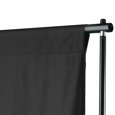 Une toile de fond noire en coton est incluse dans ce système. Le système peut également être utilisé en combinaison avec d’autre fond et / ou rouleaux de papier. Ce système de fond flexible convient aux portraits, aux photographies commerciales et aux photographies de table. Le fond a une largeur maximale de 300 cm et la hauteur peut varier entre 75 et 210 cm. Si vous souhaitez utiliser le système sur site, cela ne devrait poser aucun problème.